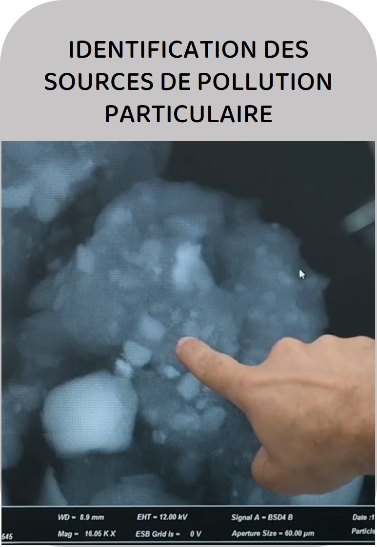 Grâce à des techniques avancées de caractérisation des particules, nous analysons le PM80, PM10, PM2.5 et le TSP pour identifier l’origine précise des émissions. Cela inclut les particules non liées aux gaz d’échappement provenant du trafic routier et ferroviaire (usure des freins, pneus et revêtements routiers), ainsi que les poussières issues des carrières, mines, gravières, chantiers, activités industrielles et processus naturels.